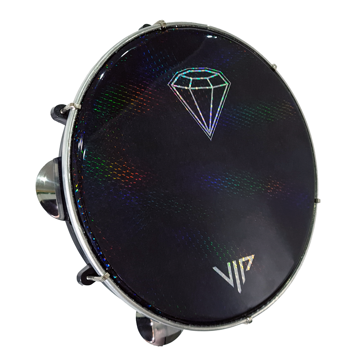 O Pandeiro VIP - 10 Pele holográfica com simbolo de DIAMANTE BLACK, aplicado por sublimação, corpo em Abs na cor preta, tem Platinelas em Inox, é a escolha perfeita para os amantes da música brasileira. Com sua marca renomada, a VIP, você pode ter certeza de que está adquirindo um produto de qualidade. Sua cor preta adiciona um toque de classe, estilo e personalidade ao instrumento. Com um diâmetro de 10" e altura de 5 cm, o pandeiro oferece um tamanho ideal para tocar confortavelmente. Seu modelo e desenho redondo proporcionam um som autêntico e envolvente. Com um peso de 313g, é leve o suficiente para ser facilmente manuseado durante as apresentações. Não perca a oportunidade de adquirir esse pandeiro novo e desfrutar de sua sonoridade única.